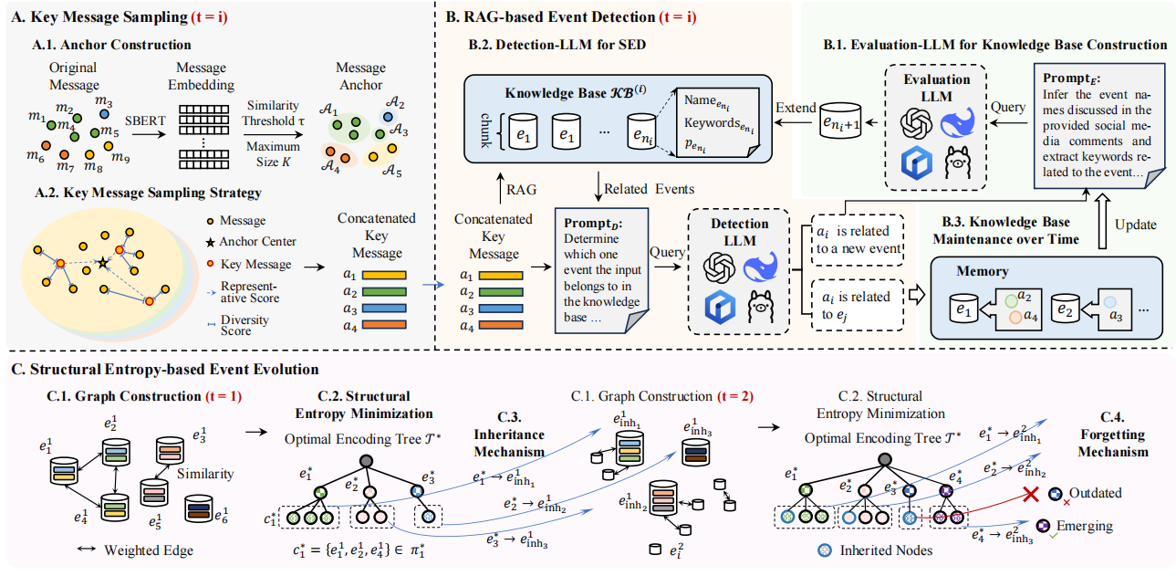 Effective and Unsupervised Social Event Detection and Evolution via RAG and Structural Entropy.